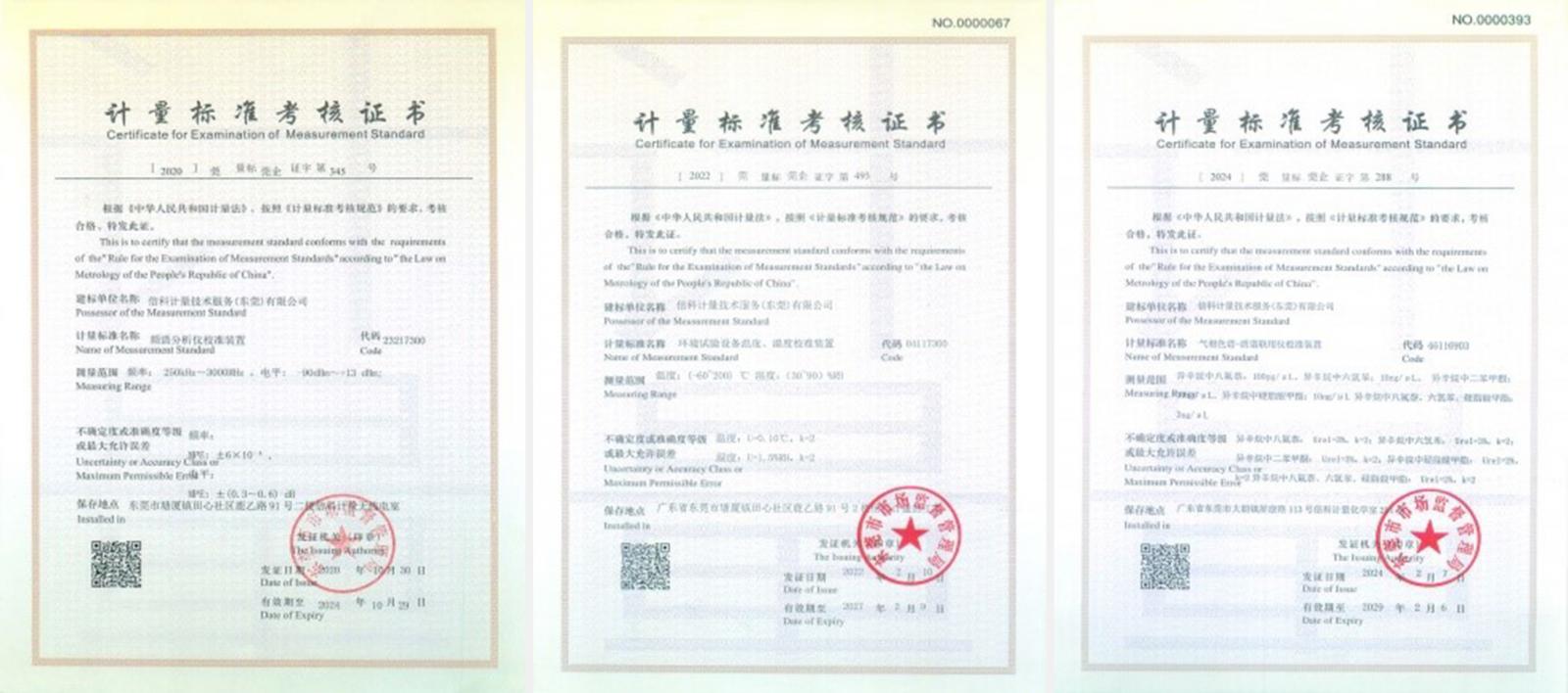 倍科計量截止目前已取得了33項有效期內計量標準考核證書(shū),涉及力學(xué),長(cháng)度,熱工,電學(xué),化學(xué),無(wú)線(xiàn)電等多個(gè)領(lǐng)域,能夠滿(mǎn)足各行各業(yè)的校準需求。